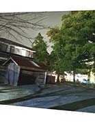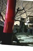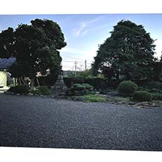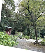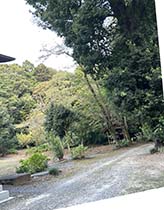 左に隣家・中央に木々・右に鳥居(パノラマ4枚180度以上)