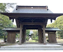 前回もお断りした通り、濃い紅色の字で綴る文章は、ご挨拶に述べた「ですます」調になっている事を、今回も引き続きお断りしておこう(^_^;)。 ■9月・茨城県土浦市・かすみがうら市、千葉県旭市・東金市・山武市 <法雲寺> 翌9月、茨城県土浦市の「法雲寺」に行きました。(地図) 山門。扁額に「大雄山」とある(パノラマ3枚ほぼ180度)