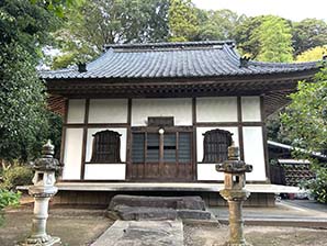 この「毘沙門堂」の脇に立って、「鐘楼」の方を向くと(「本堂」は左側となる)、通りを挟んで左に「鐘楼」、右に先ほどの「観音堂」が見えるが、この通りの右手に「伊能忠敬の墓」に行ける階段がある。↓