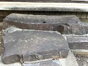お堂には「正受庵」と書かれた扁額が掲げられている。法雲寺の前身道場の名残を今に残しているのだろう。 「正受庵」堂の足元の御影石がすこぶるデカくて、↓