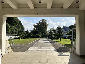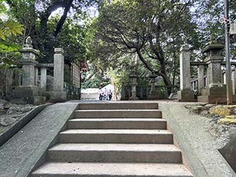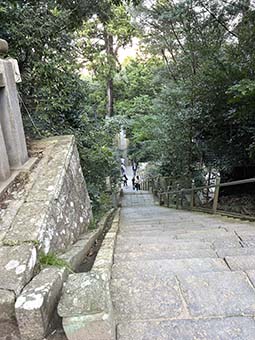 前を向くと、右が正面石段へ続く道(パノラマ3枚)