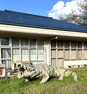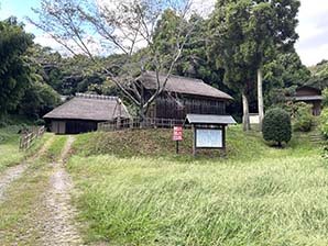 が、天正元年(1573)には常陸統一を目指す佐竹義重の軍門に下り、宍倉城は落城。 戦国期は慶長7年(1602)、本堂大和守義親が幕府に志筑の上中下など18村を知行され、出羽国仙北郡から転じて陣屋を設けた。(同年、宍倉城廃城) 時の特別展示は、伊東甲子太郎(新選組→御陵衛士)でした。このエリアは伊東の地元なんですね(^_^;)ゞ なので、亭主はゆかりの城跡に興味を示し、志筑城跡に向かう事としました。 (ちなみに上のワニは、駐車場に居るw 帆掛け船の展示と説明版があるので、敷地内だと思う。ワニの近隣の建物も博物館関連施設じゃないかと(^_^;)ゞ) <「旧福田家住宅」「旧福田家板倉」> その途中に見つけた、「旧福田家住宅」「旧福田家板倉」という展示民家のある一帯を見学しました。 旧家だけでなく、周囲には、石庭風の長い坂道などもあり、屋敷内には抹茶とお菓子の広告などもあって、観光名所として発展しそうな気配が濃厚でした。 二軒の内、手前にあるのが「板倉」、奥にあるのが「住宅」のようだ。↓ 現地にその案内は無く、ネット検索で調べた(^^ゞ。(地図←二軒の間にポイントした)