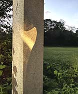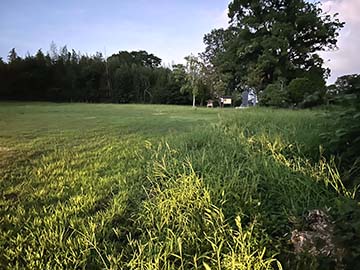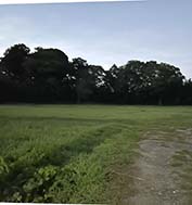 或いは何か庭園公園のような計画があって、造作中なのかもしれない(^^ゞ この辺り一帯、まだ未開発ぎみな空間に思えた。 車道から入って来る道が物凄く急な下り坂がイキナリ始まり、ちょっと車体裏を傷めたんじゃないかと気になったほど(^_^;)。。 さらに、ここまで来る道も幅が狭く、道も駐車場も草が茂り水溜まりのある凸凹地なので、来てみたい人は注意が必要。(今は整備が進んでるかもしれんが) <志筑城跡> 日暮れを過ぎましたが、やがて志筑城跡に到着(^_^A)。(地図) 学校の校庭みたいな場所でした(笑)。ただそのグラウンドには雑草が生い茂り、暗がりの中で進むのはちょっと躊躇を感じましたが、奥に行くと、ようやく伊東甲子太郎の顕彰碑とその説明版に出会えました(^_^A)。 志筑城は、平安末期の1100年代後半〜1200年代初頭の武将、源頼朝から地頭職に任じられた下河辺政義が「始めて築き、住した」と『新編常陸国誌』にある。 政義の子孫が益戸氏を名乗って、その後も代々治めた。 すっかり日が暮れてしまった。。(パノラマ3枚ほぼ180度)