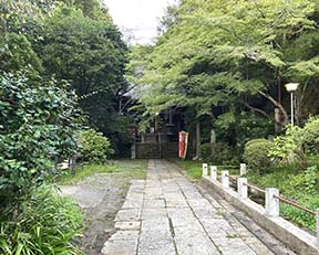 この階段を上がって行けばいいんだが、山門に来る前に、もう一か所、お寺の建物らしきが連なるのが見えたので、確認のため、ここで踵を返して、山門を出た。 山門前の通りを右に向かうと、道の左側に、今言ったお寺の建物群が見えるので入る。