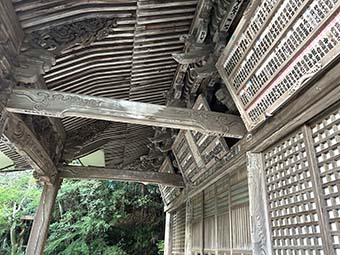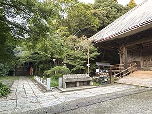 ↑左の写真の通り、薬師堂と受付の間を進むと、右の写真の通り、本堂の前を通る。 通路の左側、つまり本堂から向かって正面は↓