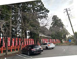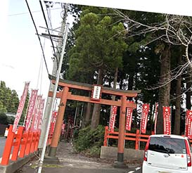 映画の封切の頃ちょうどコロナで、上映はあまり評判にならなかったのが残念だが、前々からウッスラ感じていた事が、映画を通して、 「やっぱり伊能忠敬の熱烈ファンって人が地元に濃く居るよねっ!(≧▽≦)」 と確認できた事も小さくなかった(笑)。 この映画に中井貴一・草刈正雄の大河史上の超大物、松山ケンイチ、北川景子といった大河有名俳優に加え、橋爪功が又登場するキャスティングに、「伊能ファンって時代劇界に結構多いんじゃないか(^_^;)」という気もした。 そこは、この寺の森林階段のみならず、佐原の街並みが、江戸末期から昭和前期までの古い建物群をズラーッと、それはもうふんだんに軒を連ねて残され、これまたテレビ番組の撮影などに使われる事も大きいだろう。(そのうちこれも特集したい) また、佐原にとって、忠敬一人に限らず、伊能家の存在がまさに「開発神」「知恵神」に匹敵するからではないか。 かように実感したこの日であった。 <多田朝日森稲荷神社> お次は「多田朝日森稲荷神社」(地図)。 まずは又々駐車場から(パノラマ2枚)