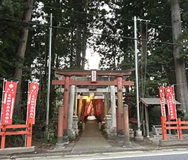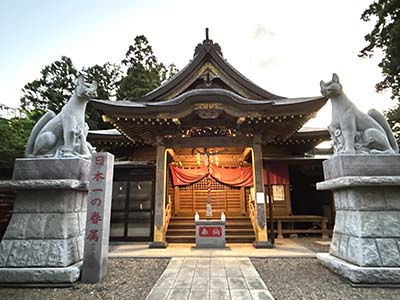 寛延2年(1749)2月、遷座導師別当、八幡山光明院・44世法印・融範によって、村内字西の地に祀られた。 が、その後、村人の間で悪病が絶えず、困惑していた所、病人の枕許に「我は稲荷大明神なり。朝日の出ずる元の地に祀り替えてほしい」とのお告げがあった。 驚いた住民たちは導師に話し、嘉永7年(1854)春、遷座導師・八幡山光明院53世・法印照恭に依って、現在の地に遷座された。