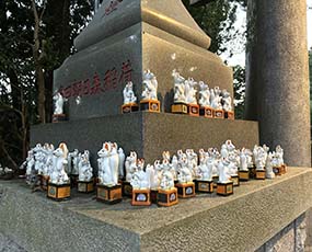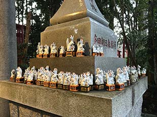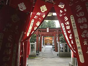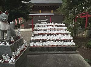「多田朝日森稲荷神社」は、小さい神社ながら、物凄い数の赤い鳥居の列、赤い幟が並んで迎えてくれ、さらに大小さまざまな大きさの白狐の像が、山ほど奉納されており、多くの参拝信者の信仰の篤さを知らされます。