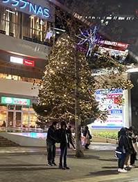 この奥の空間は、屋台の食べ物を食べてる家族連れや恋人同志、同級生仲間っぽい人たちがいっぱい居た。 マスク外して食べてる所に、私が通りかかったら、「スイマセン!」と口を押えた高校生ぐらいの男子がいて、凄く良い印象を持った。 屋台が大盛況で(笑)、前年に比べても、かなり力を入れて、地域のXmasを盛り上げようとしてる熱気が感じられ、ヨソの土地ながら応援したくなった。