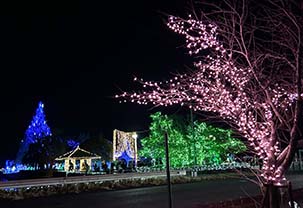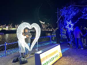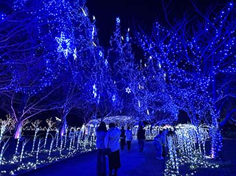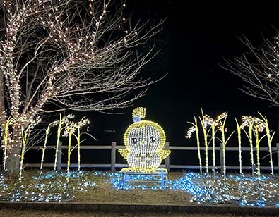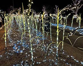秋エリアが特徴的で、普通、秋と言えば紅葉を連想するし、ここにもそれっぽい電飾はあるんだが、強調してるのは稲の水田で、これが前年よりさらに際立ったように感じた。