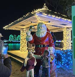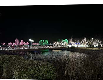 一番最後のなんか、窓のカーテンの結び方とか、どう見ても中で舞踏会やってるお屋敷の装いなんだが、ボカシをかけちゃったんで、華麗さが伝え切れないのが残念(>_<)。。 (大抵は窓もだいぶ暗いので、あまりボカシも目立たないんだけど) <かわちイルミネーションPart2@2024> 今年クリスマス直前に行ったのは、今回『近況その3』に入ってスグ言った、稲敷郡にある「かわち水と緑のふれあい公園」で行われる、「かわちイルミネーション」です\(^O^)/ ここホント凄いんですが、去年来た時には無かった屋台が、ズラーッと軒を並べてて、去年よりさらに盛大になってました! 地図。5月に特集したが、5月のは一昨年(2023)のだった。去年(2024)も又行った\(^O^)/ 4ヶ月前にやったばかりなので、今回は、前回とは違ってる所や、前回はやり足りてなかった所を特にとり上げたい。