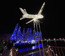 白いハートの撮影スポットは、前の年もあったのかもしれないが、この時も一番混雑した人ごみの中にあったので、前の年にあったとしても撮れなかった可能性が……(^_^;)。 水橋の方は、5月のレポでは冬を先にやって、春・夏・秋と進んで、「あとは冬に戻るだけ」と言って終りにしたので、秋から冬へ(今回は冬から秋へ)の風景はカットしてしまった(^_^;)。。 この橋の上に、上の写真に見る通り、飛行機が飛んでる。